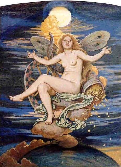 For most of his career the american painter, Vedder, lived and worked in Europe, and like Whistler or Sargent he is in many ways as much a european as an american artist. He first visited Italy in 1857, when he was twenty one and studied in Florence under Raffaelle Bonaiuti. In 1866 he returned, married, to settle in Rome and remained based in Italy for the rest of his life, with a house on Capri as well as a home in Rome itself. He became a member of the large international circle of artists living and working in Rome, painting historical and religious subjects at first, but developing his own distinctive brand of Symbolist allegory. He was also a prolific landscape painter, working with Giovanni Costa and the 'Etruscans', including William Blake Richmond. From these landscape artists he took a love of low horizontal compositions that appear in his work in other genres. He visited England frequently, was much interested in the Pre-Raphaelite movement, becoming a friend of Simeon Solomon, with whose work his own has affinities. On his first visit to London in 1870 he met Watts and admired the work of Rossetti, Alma-Tadema and Leighton. Vedder's work has a power of evocation which is reminiscent of the symbolist artist Odilon Redon. In Rome in 1890 he was among the artists, including several from Britain, involved in the 'In Arte Libertas' group inspired by Gabriele D'Annunzio. Vedder hoped to receive the commission for the decoration of the American Episcopal Church in Rome, where he was a vestryman, but it was given to Burne-Jones. In the 1880s and 1890s he made frequent trips to the United States, and brought out his edition of Edward Fitzgerald's Rubáiyát of Omar Khayyám there. Vedder described the Rubáiyát as 'a poem so much in harmony with my thought'. As a decorator, he created the allegorical paintings which are to be seen in the hallway of the Reading Room of the Library of Congress in Washington. After 1901 he remained in Italy, publishing his memoirs, The Digressions of V, in 1910.