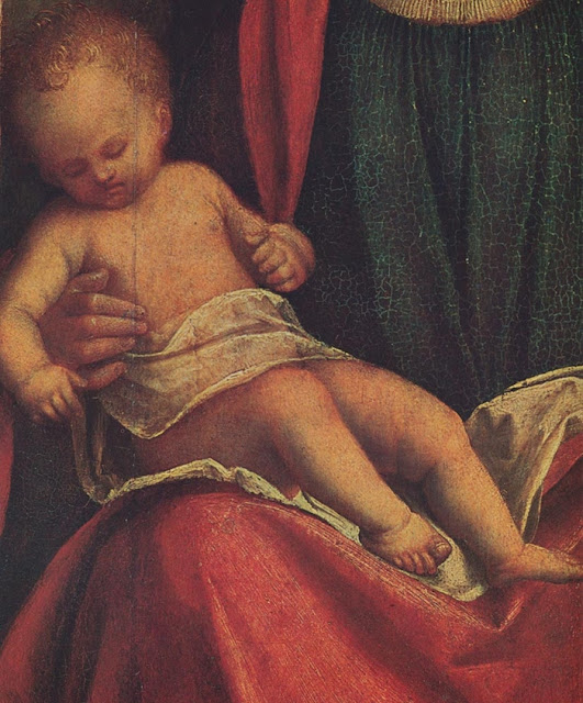 In 1508 he was painting frescoes on the outside of the Fondaco dei Tedeschi, near the Rialto finished in November 1508, the headquarters of the German merchants in Venice and Titian was also working there in a subordinate capacity. Only damaged fragments of the decorations, which were engraved in the 18th century, survive in the Accademia, Venice, but the link with Titian is important, for it seems to prove that it was Giorgione, and not Titian, who was the great innovator.