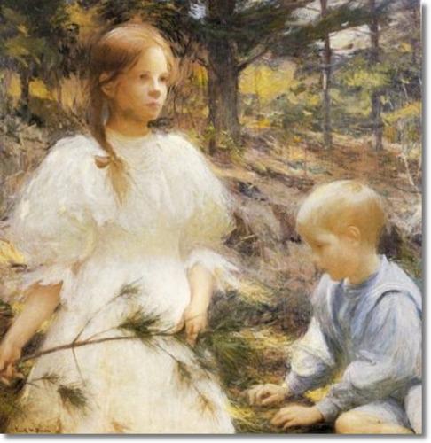 Frank Weston Benson was born in Salem, Massachusetts. He studied at the School of the Museum of Fine Arts in Boston, and then at l'Académie Julian, in Paris, with Boulanger and Lefebvre. Benson was a teacher throughout his career, first in Portland, Maine, then in his Boston studio, and later at the Boston Museum of Fine Arts. Benson was accomplished in a variety of media including watercolor, pastel, aquatint and engraving and was a founding member of "The Ten," a group of ten well known American Impressionist painters from New York and Boston who exhibited together for nearly twenty years. Like his French counterparts, Benson frequently painted outdoors to capture the dynamic character of light. In the late 1890s the artist accepted a prestigious commission to work on the decoration of the Library of Congress and completed murals of Fours Seasons and Three Graces for the project. The Impressionist style, pioneered by Monet in France, enjoyed tremendous popularity with the American public and as a result, Benson attained a large measure of success as an artist during his lifetime. Frank Weston Benson was one of the most successful and prolific artists of his generation. He died in his home in Salem on November 15, 1951.