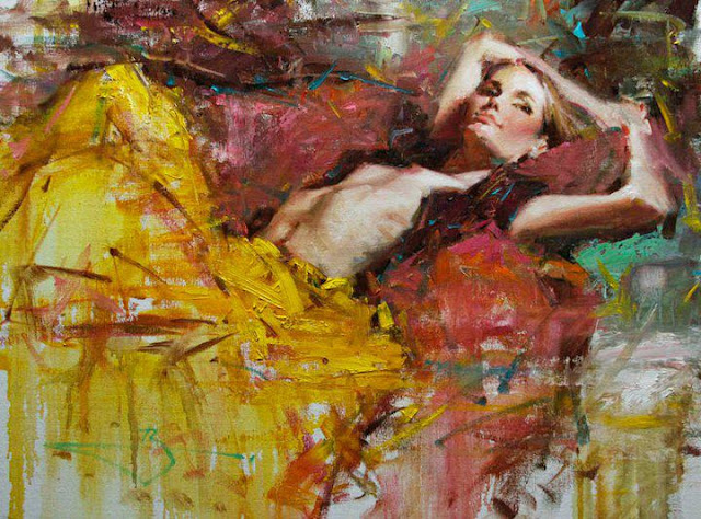 the model that comes up with the most natural pose allowing more of their true selves to shine through." Kevin's training at the American Academy of Art in Chicago was his biggest influence on his art career. "Our training was in the classical tradition," he explains, " "we had two classes a day: a 3 hr. figure DRAWING session in the morning, and a 3 hr. figure PAINTING session in the afternoon. With training like that, it's hard not to fall in love with the human form. Whether the figure is clothed or unclothed, the artist must meet the unique challenge presented by both." Kevin says, " I believe there are endless possibilities when painting the human figure. Even if you were to paint the same model over and over, you can always explore and find something new and beautiful to express in a painting. I hope to express that same beauty I experience in my models to the viewer, so that they might also share in that same experience." Kevin Beilfuss lives in the Chicago area, where he lives with his wife Janice, and son Drew. Says the artist, " Right now I am content with the joy (and sometimes frustration) I experience in the painting process. I am thankful that God allows me to be able to do something I have loved since childhood, and hope to enjoy the rest of my life!"