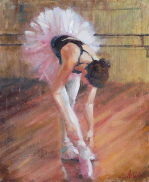 E. Melinda Morrison is a story teller. Her stories are of diverse people and places with long histories and uncertain futures, and she tells it all in the language of oils and light and composition. Although her paintings have their foundation in the quotidian of daily events and experiences, she enhances and enlarges those slices of life and paints what she wants to see with a certain looseness and abstraction in shapes. Her colors are carefully paired with grays – never “color for color-sake,” rather color for the sake of the narrative. In her own words, she “enjoys telling the story” and revels in framing a climactic scene: “whether a humorous or an emotional moment, capturing a person in spontaneous expression is the ultimate glory for me in painting.” As an extroverted artist, Morrison has always had the unfortunate tension of drawing energy from interaction with people, while needing to nourish and express her creative soul in solitude. As a young woman, her B.A. in Fine Arts from the University of Texas at Tyler took a backseat to the corporate world for many years: advertising exec; graphic designer and art director of her own company; corporate recruiter. Not surprisingly, she was recognized in national competitions for her print design and annual reports. But shortly after her move to Denver in 1994, the satisfied extrovert began to hear from the starving artist; she says she “felt like her soul was drying up”. An oil-painting class at the Art Students’ League of Denver rained water on that desert ground. Over the next five years, Melinda studied painting at the League under the guidance of Colorado artists Quang Ho, Kevin Weckbach, and mentor, Kim English. As her passion and skill grew, so did her dream to paint full-time. After getting laid off from her job in 2003, Morrison admitted “if I don’t do it now, I’ll never do it.” She made the leap and brought years of corporate skills into the new and intricate dance of a full-time professional art career. She hasn’t looked back. Since that decision, Melinda is now collected among hundreds of collectors all across the US and is respresented by major galleries in Boca Raton, Florida; Houston, TX, Santa Fe, New Mexico; and Denver, CO. Photos of Melinda in her studio with her dogs, Amx and Robin. Photos are taken by Shelby McQuilkin